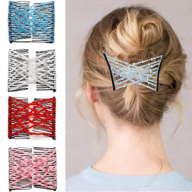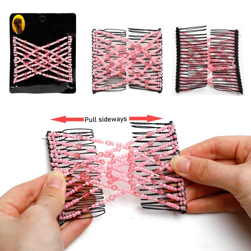 - Unique Design: Featuring a unique elastic double comb design, it is easy to use and holds your hair securely. There is a strong elastic band between the two combs to stretch around your hair, both combs work together, it won't hurt your hair or hurt your hairstyle. It is not only suitable for your daily use, but also for DIY many kinds of hairstyles.