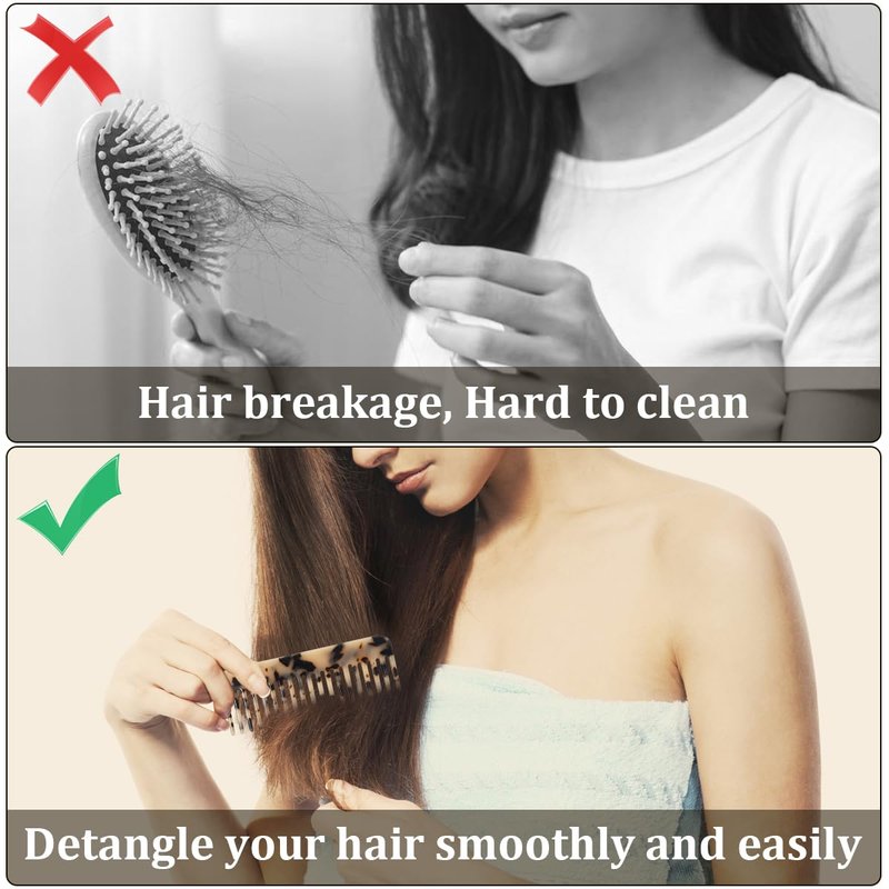 - 【MULTIFUNCTIONAL】Our tortoise shell comb can be use for many hair kind, no matter straight hair or curly, dry hair or wet hair. The wide tooth can smooth your hair quickly and helps to create less static in hairs. The wide tooth detangling comb can also detangling both wet hair and dry hair and make less breakage compare to the traditional combs