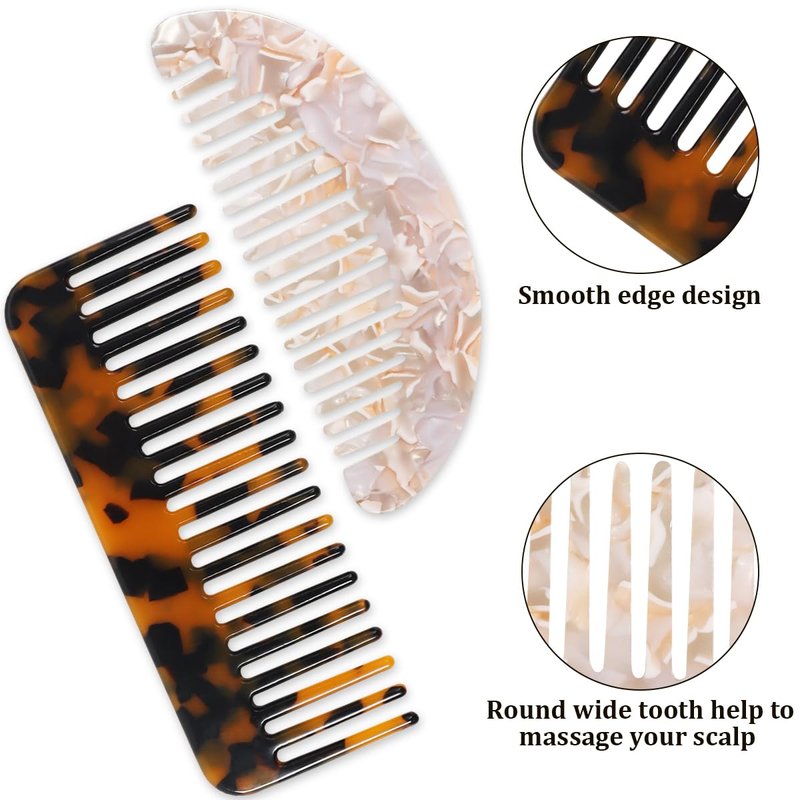 - 【PROFESSIONAL DESIGN】These cellulose combs adopts a wide tooth design and comes with French style can take care of your hair and help you to embellish your hair to become more charming. These wide tooth comb with round tooth design can help to massage your scalp while you using it and won't harm your scalp. Besides, the edge of these hair side combs for women is very smooth that can be grip easily and to detangle hair
