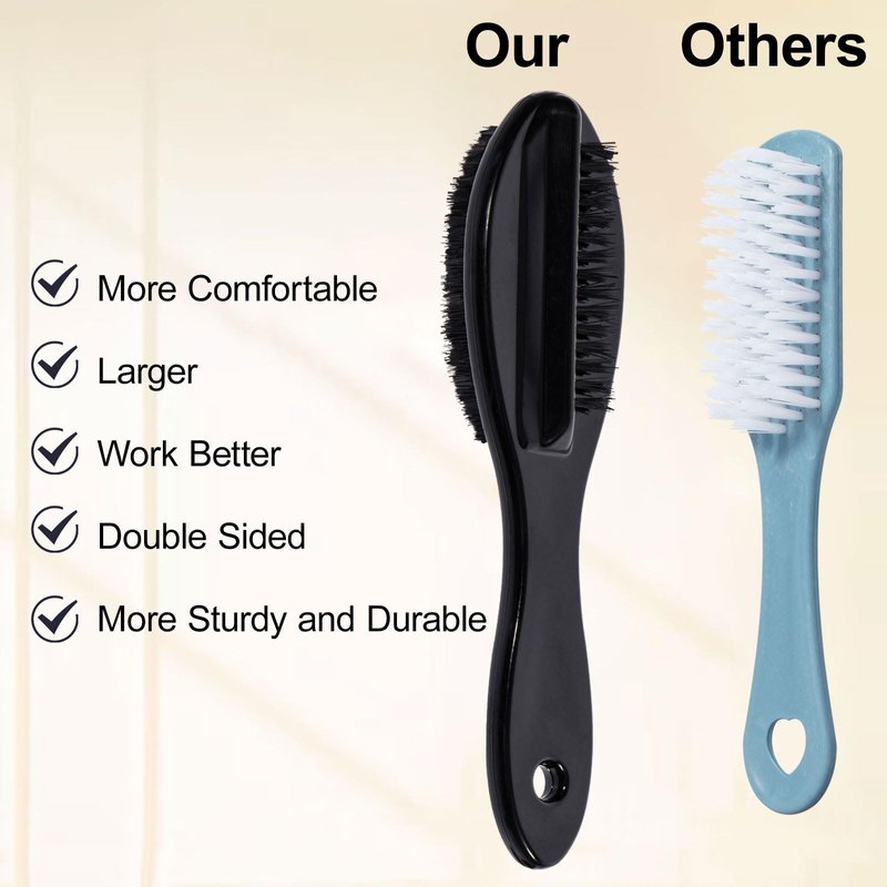 - DOUBLE SIDED- Our brushes have double sided bristles design; The firm, coarse bristles of our scrubbing brush effectively clean under nails;Thickened handle, comfortable hand feeling, sturdy and durable