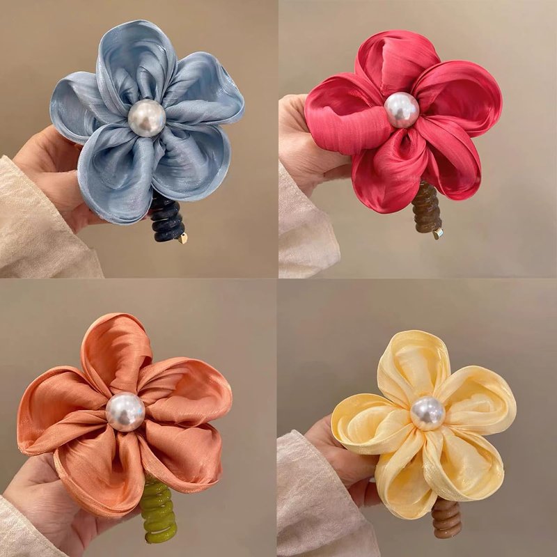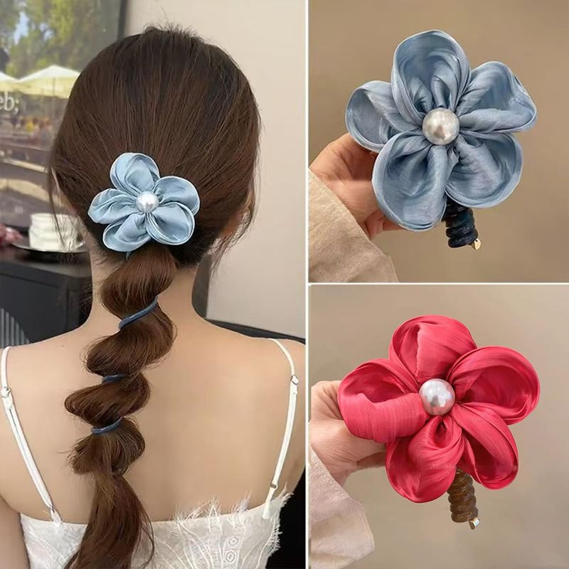 4 Pcs spiral Telephone Wire Hair Bands Braided Colorful Flower Shape Phone Spiral Hair Ties Ponytail No Crease Coils Thick Thin Hair Ponytail for Women Girls Daily Headdress