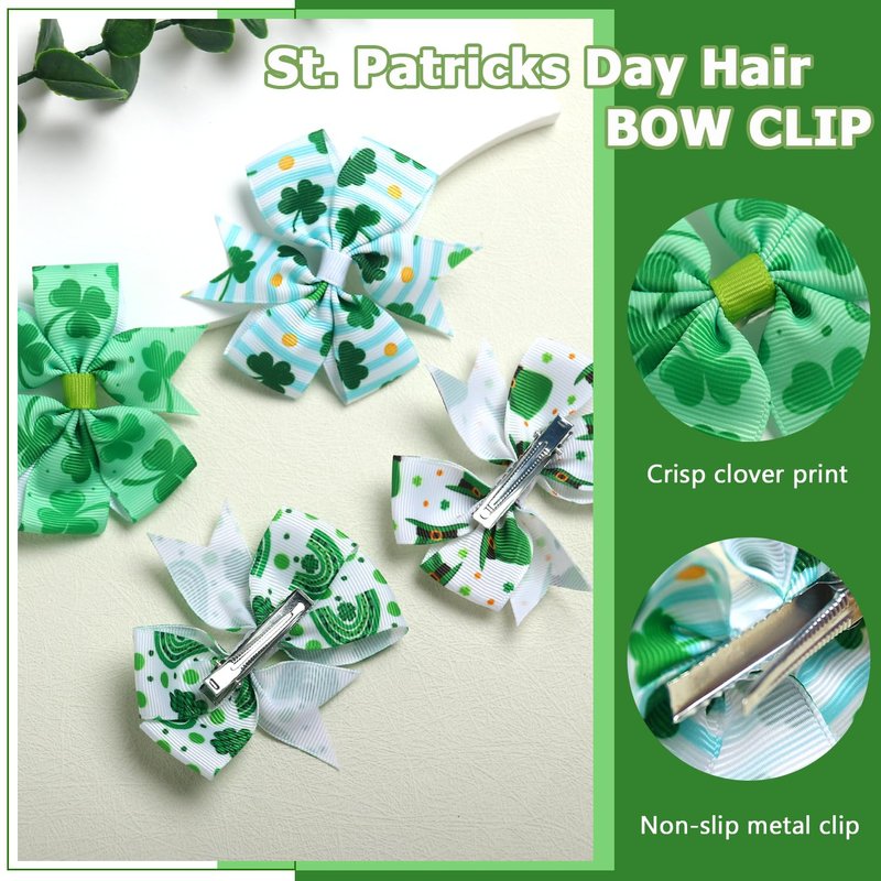 - 【Package Includes】You will receive 4 pieces of St. Patrick's Day bow hair clips, mainly available in green and white colors. You can choose the appropriate style to match your child's clothing to participate in St. Patrick's Day parties, parades, and celebrations.