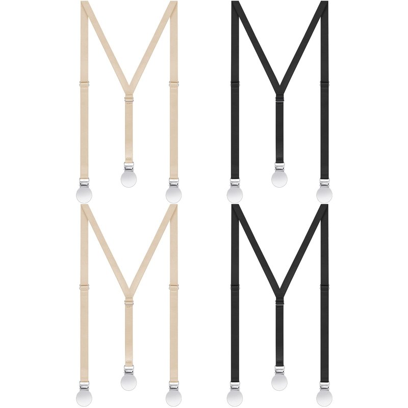 Features: These invisible suspenders for women are specially made for lifting your pants and making your pants look smooth and tidy, and fit your body well. These cute suspenders for women are suitable for many different clothes, such as jeans, yoga pants, leggings, maternity clothes, casual clothing and more, adding much charm to your outfits. Specifications: Material: polyester and elasticColor: black and beigeSize: one size/ about 27.6-43.3 inches/ 70-110 cm in length, about 0.47 inches/ 1.2 cm in widthPackage includes: 4 x Adjustable Y back suspenders for womanNotes: Manual measurement, please allow slight errors on size. The color may exist a slight difference due to different screen displays. Winding risk may exist, please keep away from little kids.