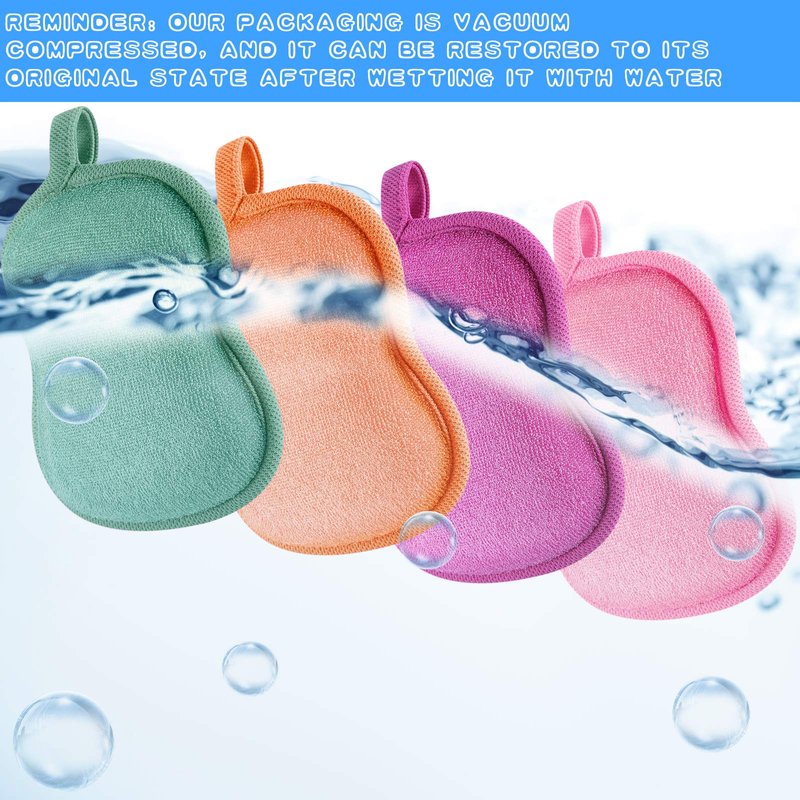 4 Pieces natural bamboo baby bath sponge soft and absorbent shower sponge for kids babies men women, 4 colors