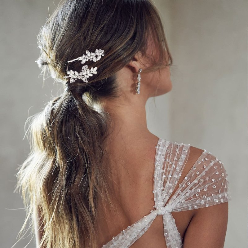- 【Wide Applications】These leaf-shaped crystal hair clips for wedding are easy to wear and stay stable, simple and elegant style. They are perfect for weddings, prom, dances, parties, and dinners and any other special occasions. They can also be applied in daily life.