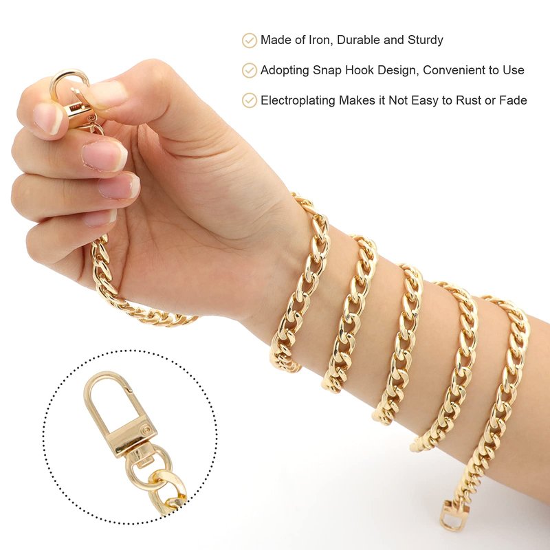- Comfortable and functional, these 0.3inch purse chain strap can help reduce shoulder pressure and will not hurt your skin; Apart from that, the wide holes is able to prevent your hair from being jammed by the chains