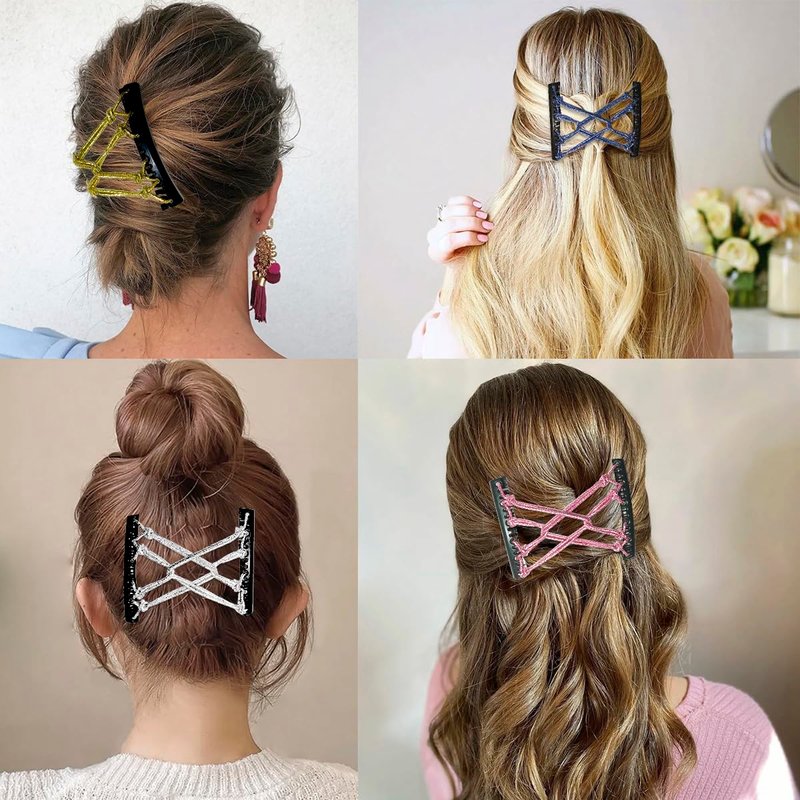 4 Pieces Elastic Hair Comb Clips Magic Stretchy Double Comb Hair Clips for Girls Women Hairstyle Hair Accessories (Silver-Pink,Gold,White,Blue)