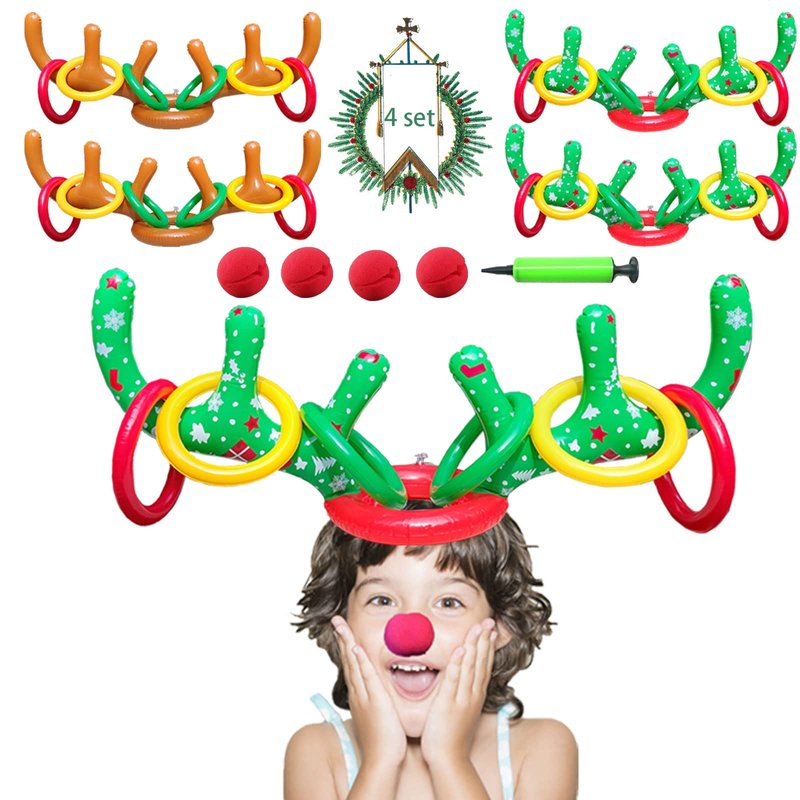 - 【package】4 Antlers + 24 Rings + 4 Noses + 1 AirPump. Enough rings to play. A fun Xmas party ring toss game for your kids and family!