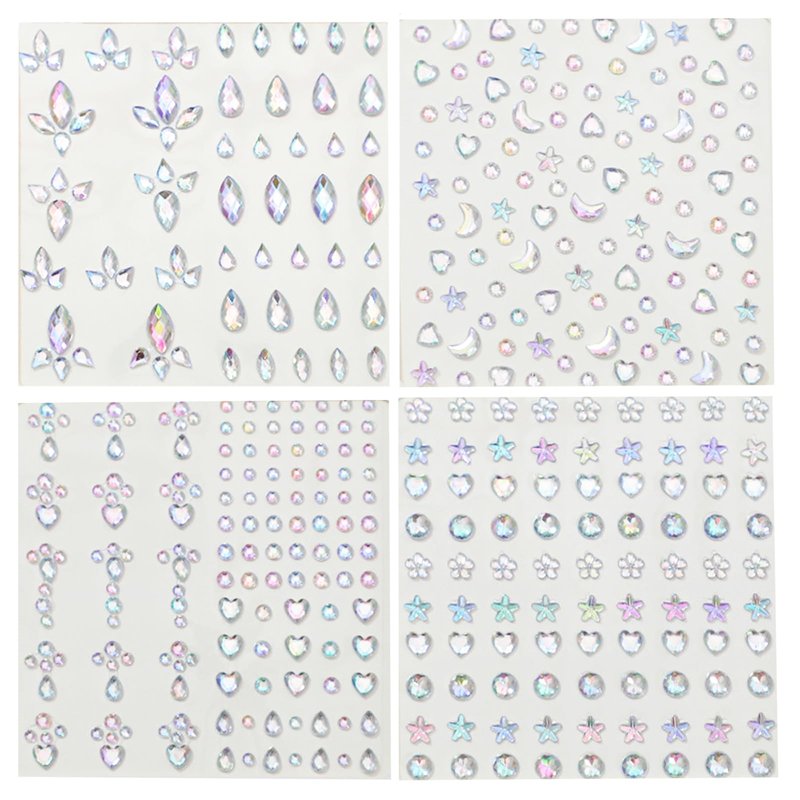 - Packaging - You will receive 4 sheets decorative face jewelry stickers in different colors and styles. Sufficient quantity and variety to meet your different makeup needs.