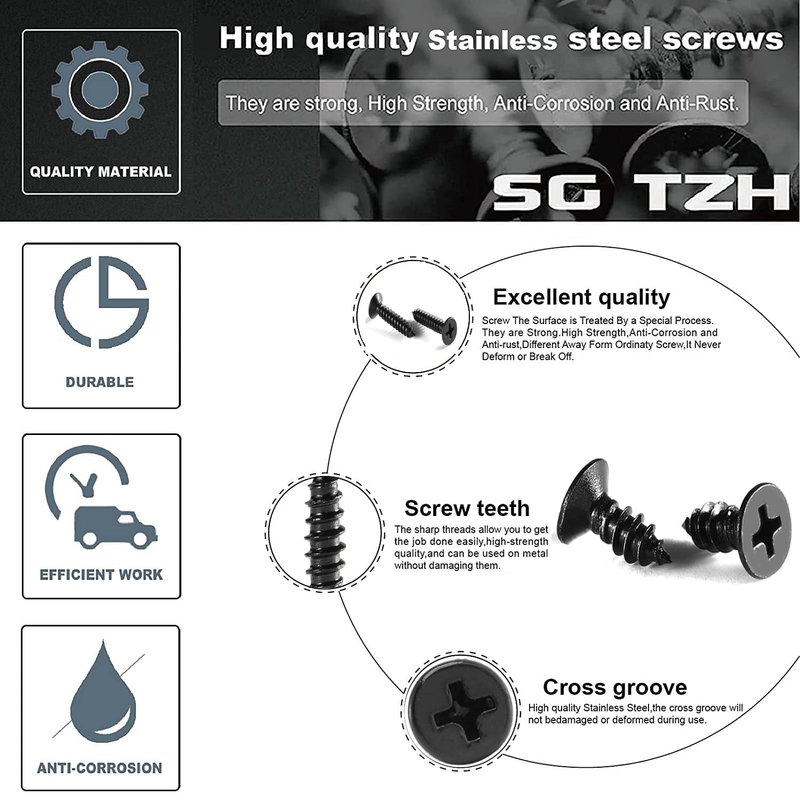 - RUGGED AND DURABLE - SG TZH Wood screws made of high-quality 18-8(304)Stainless Steel,which has higher corrosion resistance and anti-rust effect than ordinary screws, longer service life, not easy to damage, more solid.