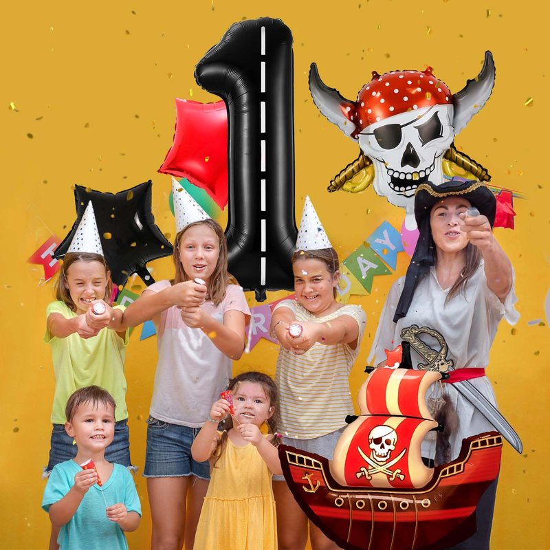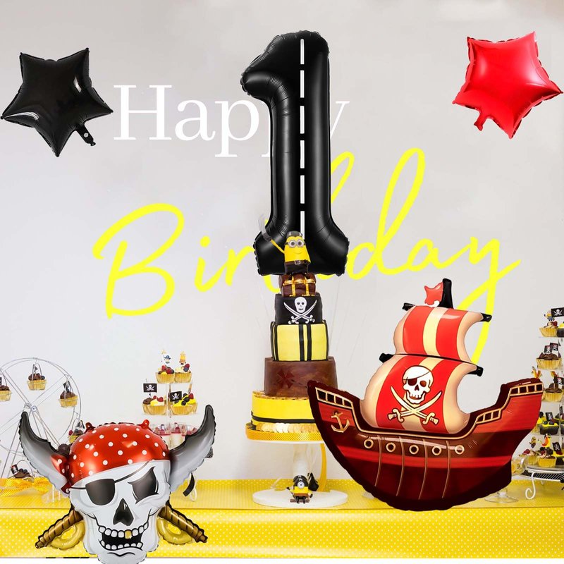 40 Inch Balloon Number, Pirate Balloons, Red and Black Balloons, Star Foil Balloon Number Balloons for Anniversary Supplies Kids Birthday Party Banquet Decoration (Number-1)