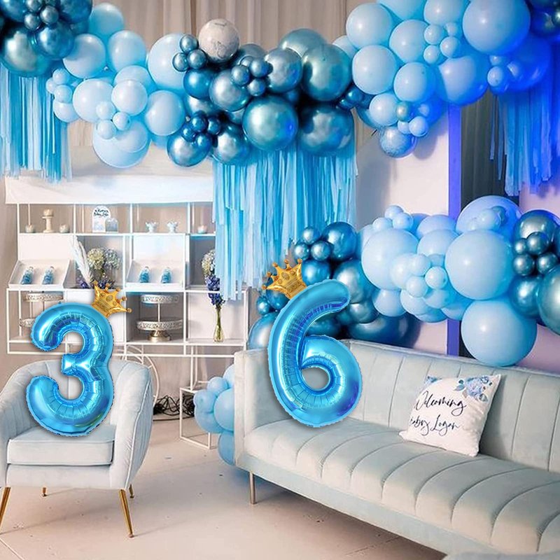 - 【PACKAGE INCLUDES】Blue Number Balloons*1, Mini Crown Balloon*1, glue dots*10 (Connect the crown balloon to the number balloon)