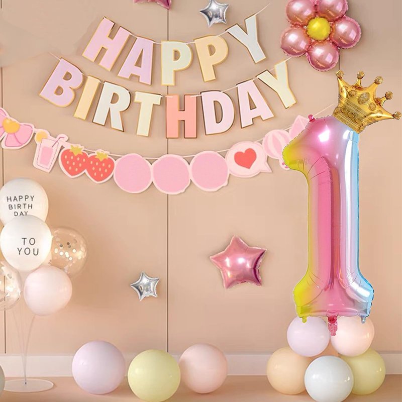 - 【PACKAGE INCLUDES】Rainbow Gradient Number Balloons*1, Mini Crown Balloon*1, glue dots*10 (Connect the crown balloon to the number balloon)