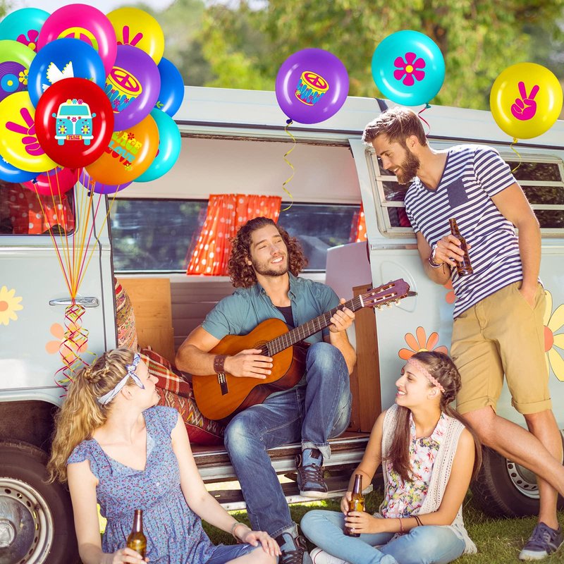 - Sturdy and Reusable: 60's hippie theme party latex balloons are made of quality latex material, stable and reusable, can be applied for a long time, and you won't have to worry about them tearing or bursting when inflated