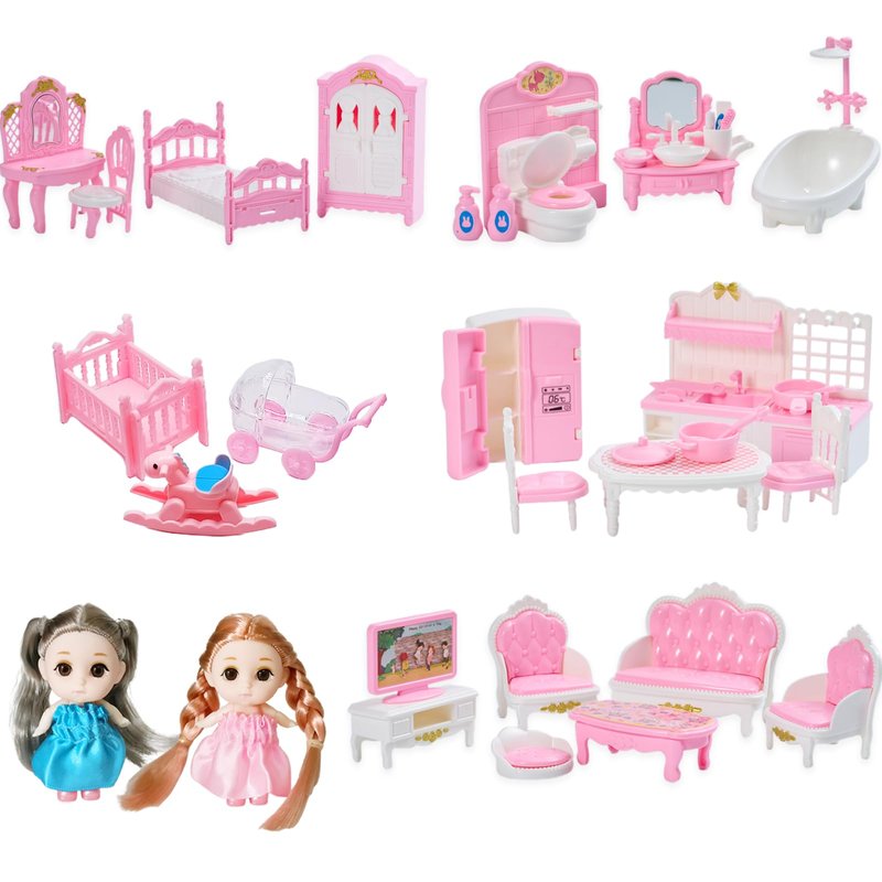 You will get 2*dolls, bedroom, bathroom, living room, kitchen, infantaccessories, every mini toy house toy set containing rich accessories from the doll house suit. Children can use this toys house furniture to decorate their own micro toy houses and create their dreams.