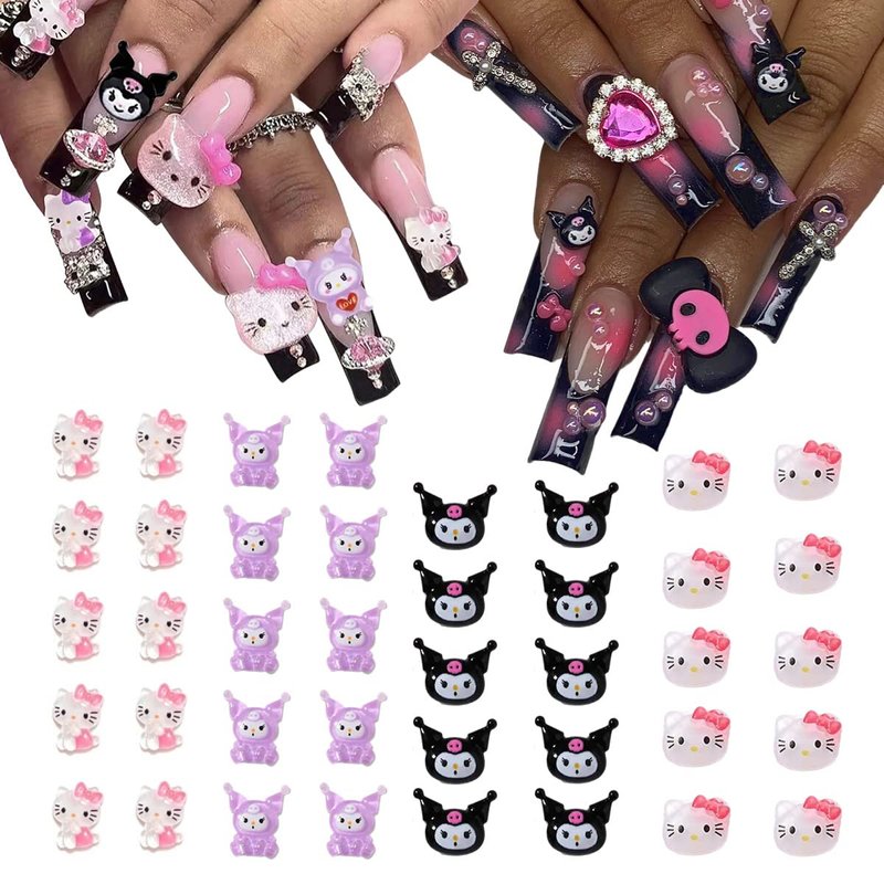 - ✔️Nail Supplies Content: 40PCS Kawaii Nail Charms, 4 pack 4 different cartoon nail charms. Pink, black and purple kawaii nail charms can help you DIY vivid and charming nails.