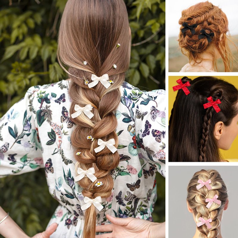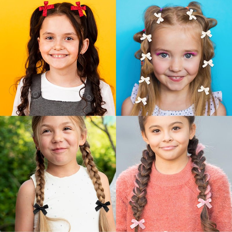 - Easy to Use:The mini bows for hair with duckbill clip design easy insertion and removal without messing up your original hairstyle. You could use these mini hair clips to decorate twist braids, ponytails, pigtails, buns, side ponytails, and so on.