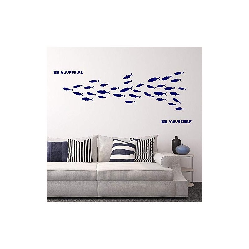 40 Pieces Fish Wall Decals for Nursery, Vinyl Wall Stickers for Kids Room, Bedroom, Bathroom, School, Nautical Marine Interior Decoration, BE Nature, BE Youself Quote Wall Decals(A30) (Blue)