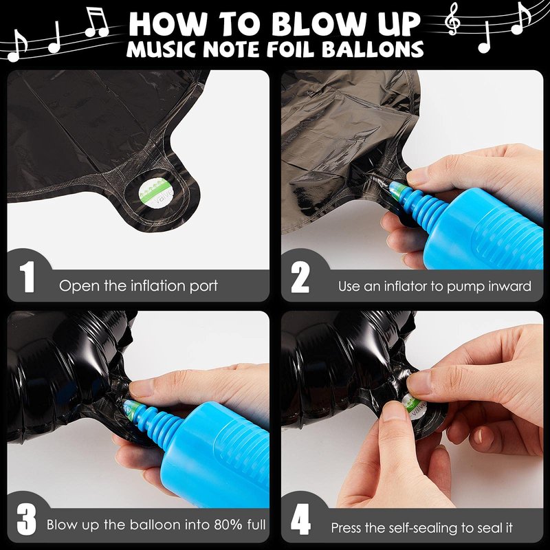- Easy to operate: you can easily inflate these music party latex balloons and foil balloons with air or helium with an air pump, please remember not to overfill them, 80% is recommended; The notes hanging swirls and birthday banners can be hung on the wall, ceiling, curtain and other places you like; They will liven up the atmosphere and be a big hit at your party