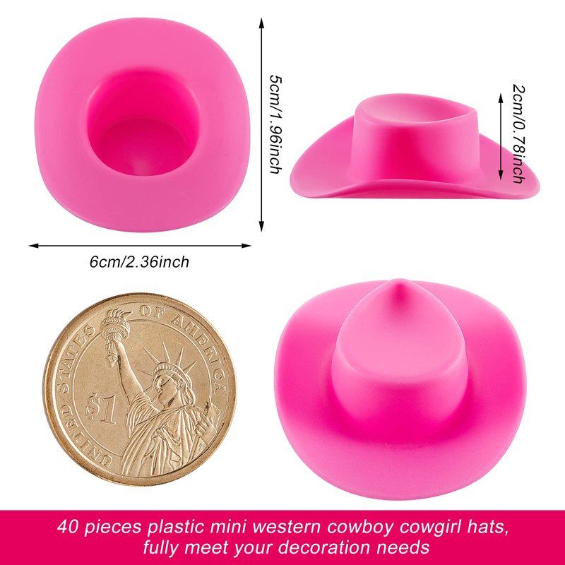 40 Pieces Plastic Mini Cowboy Hat Cowgirl Hat for Crafts Western Hat Miniature Cute Doll Hat Tiny Party Hat Doll Party Accessories for Shooters Pretend Play Dollhouse Decorations(Pink)