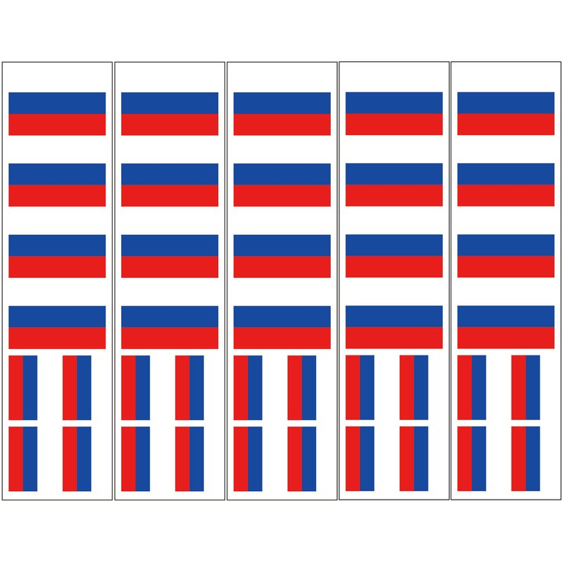 One order = 5 sheets. Each sheet features 8 Russian Flags (4 are 4.5 cm width, 4 are 3cm width) so you receive a total of 40 temporary tattoos. Premium quality, rich colors last for days (depends on your skin). These are applied with water and are waterproof. Great for Russia parties!