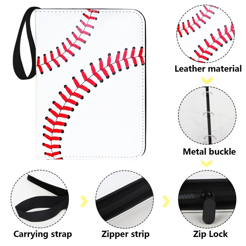 - ⚾High-Quality Material: The surface of the card binder made of Faux Leather can waterproof, dustproof and wear-resistant. Equipped with two-way strong metal zipper, which can effectively prevent the collected cards from falling.Removable metal clips also is convenient and fast allow you to add, remove and card pages.