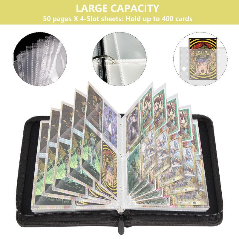 400 Card Binder Pockets, Trading Card Binder with Sleeves, Basketball Card Binder,Trading Card Albums Sports Card Binder Collectible Fits 400 Cards with 50 Removable Sleeves