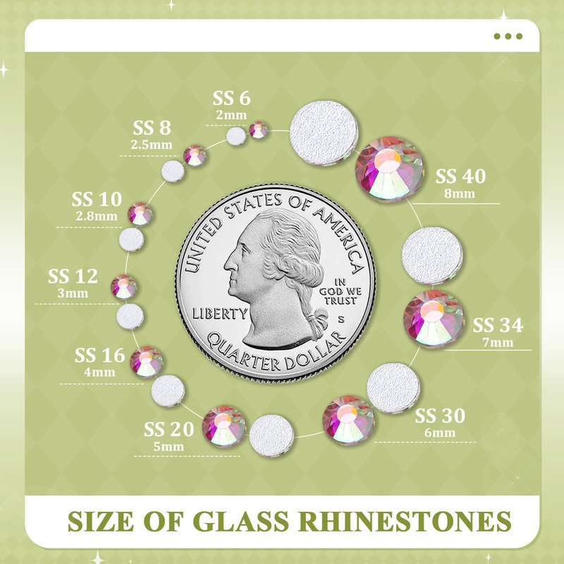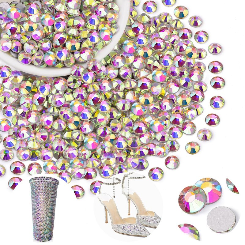 💎WHAT WILL YOU GET -- The package contains about 400 pcs SS30 (0.24") blingbling glass rhinestones (Crystal AB). The large amount will support you to fulfill a number of your wonderful DIY decoration ideas. 💎TIPS FOR USE -- These are NOT Hotfix flatback gemstones and adhesives are required for application. We recommend using B7000 rhinestone jewelry glue for DIY crafting projects. As for nail art, UV glue or quick dry nail glue should be better. Please clean the surface of your nails or the crafts you wish to embellish before applying the rhinestones with appropriate glue. (Please note that glue is not included in this package.)💎WIDE APPLICATION -- The iridescent and bedazzling gems will remarkably add glitz to your DIY crafts, like shoes, sneakers, high heels, tumblers, mugs, goblets, bottles, clothes, dresses, jeans, hats, masks, glasses, phone cases, popsockets, scrapbooks, diamond paintings, greeting cards, bags, guitars, keychains, hair clips, etc. You can use them for face makeup, eye makeup, body art, 3D nail art as well. Apply it to whatever you want to bedazzle! 💎ONE-STOP PURCHASING -- The rhinestones are packed by weight, with each pack containing approx. 400 pcs. Our store offers a variety of colors and sizes of Glass rhinestones for your one-stop purchasing. By choosing glass rhinestones with similar or contrasting colors, you can create color-coordinated or highly contrasting works, such as phone cases with gradient effect or colourful festival decorations.
