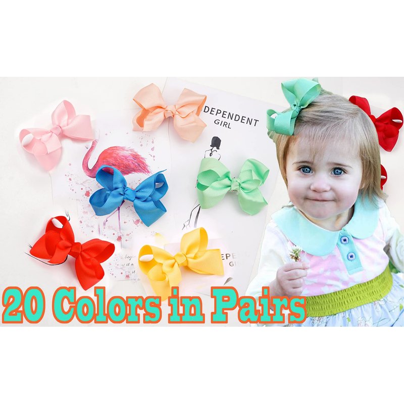 - 20 Colors of hair bows,each color come in 2 matching colors,totally 40 pieces.So many colors enough to go with the clothes