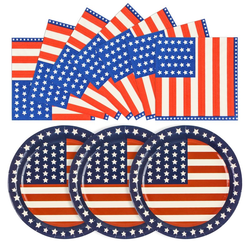- 【Patriotic Party Supplies】These patriotic paper plates and napkins are perfect for 4th of July, Memorial Day, Veterans Day, and Labor Day parties, or any indoor/outdoor event that requires a patriotic touch.
