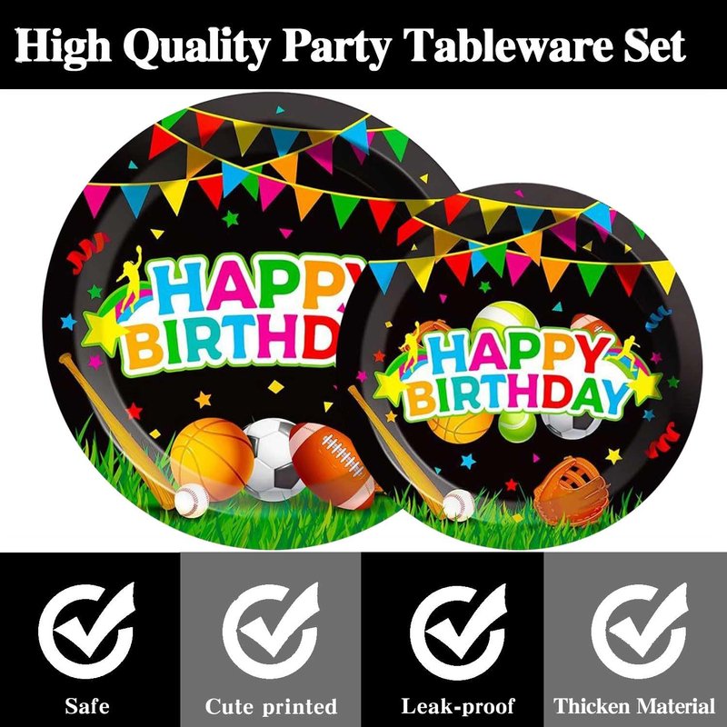 - Easy to Use:sports party tableware are made of safe and harmless material. not only does the sports party plates napkins add fun and sparkle to your party, but it drastically cuts down on your party prep time so you can spend more time enjoying the party with your friends. All you need to do after the party is to throw away these disposable tableware , which is very convenient. make you fall in love with throwing parties!
