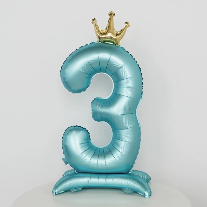 42 Inch Standing Blue Number 3 Balloons With Crown, 3rd Birthday Balloons for Boys Girls, 3rd Birthday Party Decoration Supplies, Happy Birthday Balloons. (Blue 3)