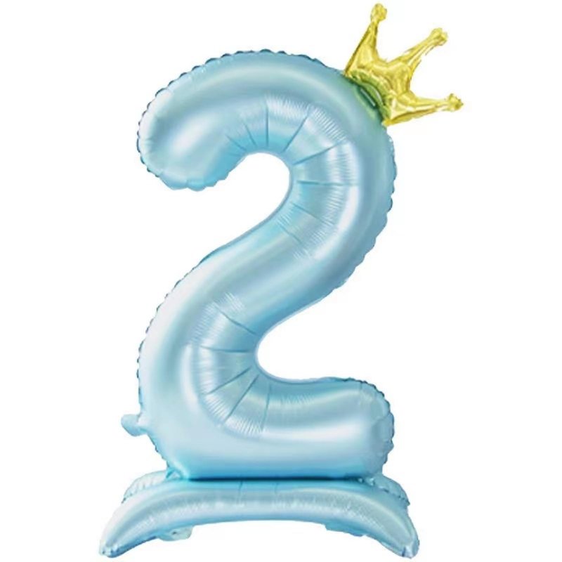 42 Inch Standing Blue Number Balloons With Crown, 2nd Birthday Balloons for Boys Girls, 2nd Birthday Party Decoration Supplies, Happy Birthday Balloons. (Blue 2)
