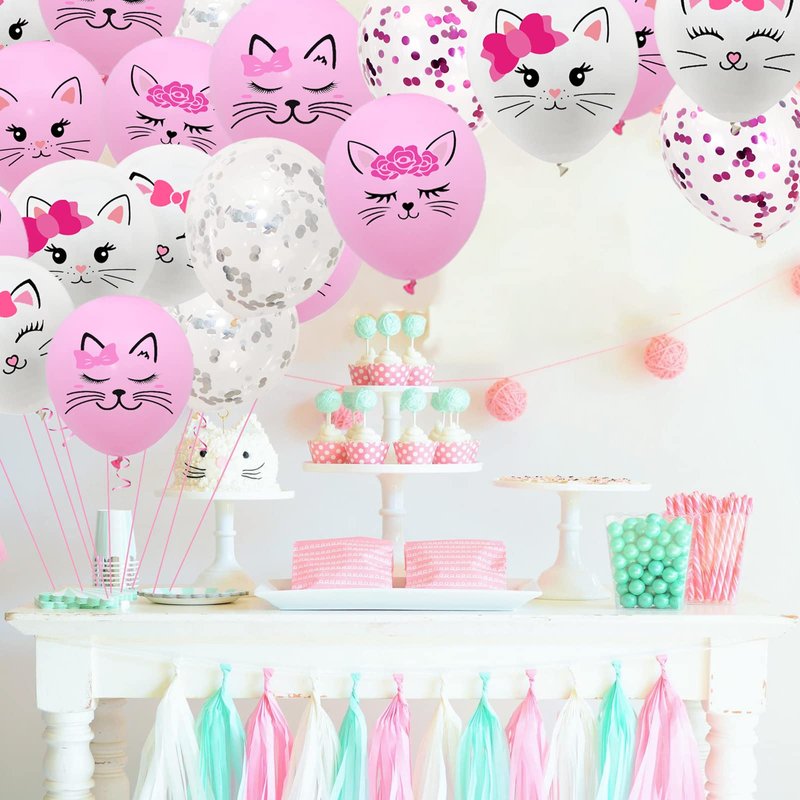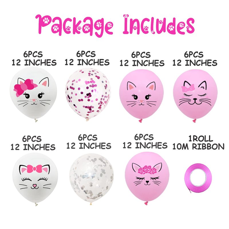 - Package Includes: You will get 42pcs kitty balloons, including 5 different cat face patterns and 2 confetti balloons in different colors. Abundant quantities and assorted color can meet your various usage. Please note that there is a slight color difference of the balloons before inflated, but it would be fine after being inflated.
