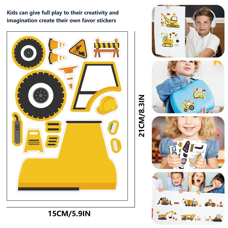 - Super Value Pack: You will receive 42 sheets Make Your Own Construction Stickers in 14 different styles. 8.27''×5.9'' per sheet. Large size makes it easier for kids to operate.
