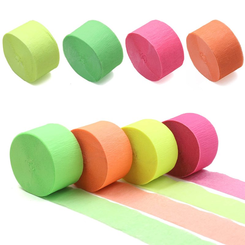 - 【HIGH QUALITY CREPE PAPER 】 Beautiful crepe paper streamers are made of high quality neon paper. You can tie and cut them to size to save more streamers for event and crafts.Crepe paper is gentle to the touch, lightweight and easy to carry around, can be reused, and has a fine texture.