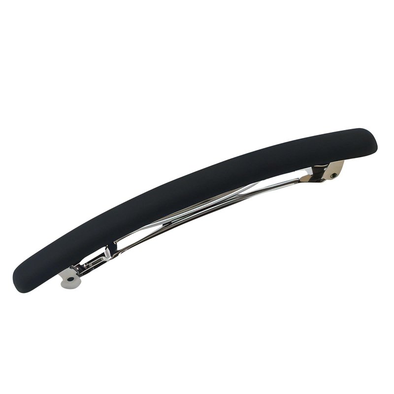 4.3" Long Shiny Curved Steel French Barrettes for Thick Hair Acrylic Hair Barrettes Chic Ponytail Hair Clips for Styling Long Hair,4pcs (Black)