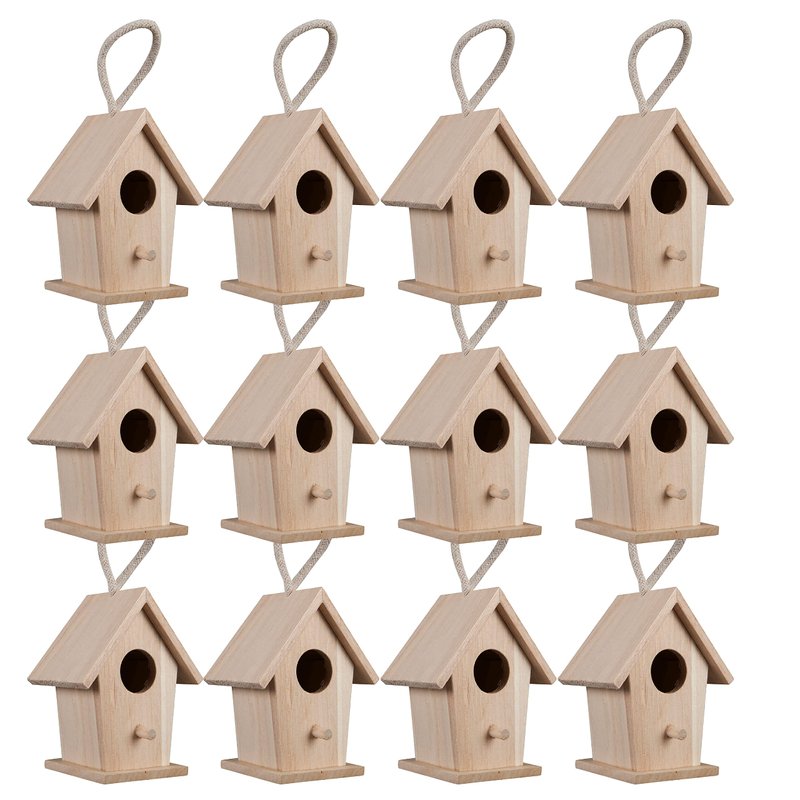 4.3" Traditional Birdhouse by Make Market - Unfinished Hanging Birdhouse Made of 100% Wood, Outdoor Nesting Boxes - Bulk 12 Pack