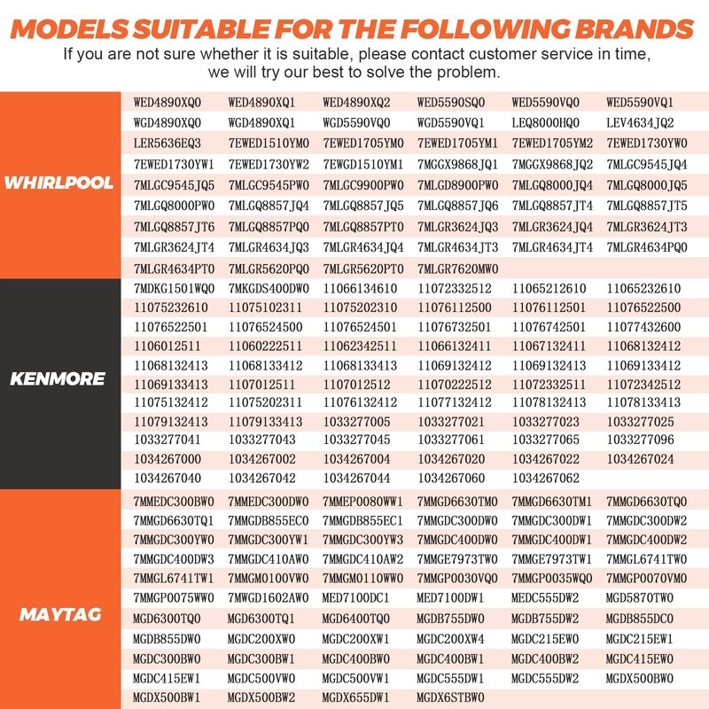 - ✅【FITS MOST 29" WIDE DRYER】:Dryer Repair Kit 4392065 Replacement fits most 29" wide Kenmore, Whirlpool, Estate, Roper, Kitchen-Aid, and other brand dryers.☞ Compatible model numbers includes WED4890XQ0, WED4890XQ1, WED4890XQ2, WED5590SQ0, 7MMEDC300DW0, 7MMEP0080WW1, 7MMGD6630TM1, 7MNGH8000TT0, 7MRGX4634MQ0, 7MRGX4634MQ1, KEYS850LT0, KGYS700JT2, KGYS700LQ0, IP80000, IP80001, CED123SEW0, CED126SBW1, CED126SXQ0, TGDS740JQ2, TGDS740PQ0, TGDS740PQ1, TGDS840JQ1, 11065212610, 11065232610, etc.