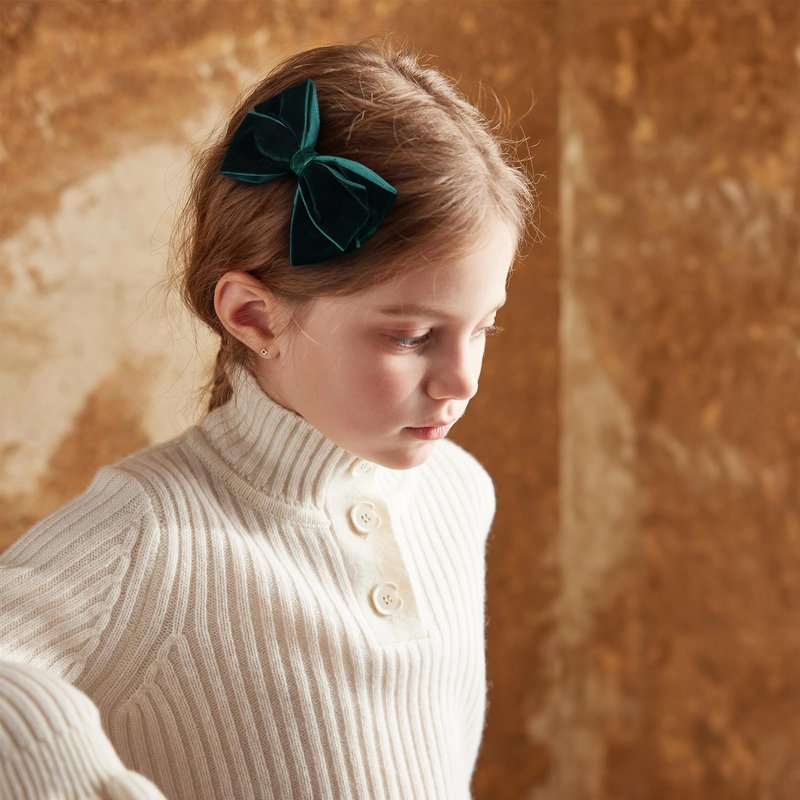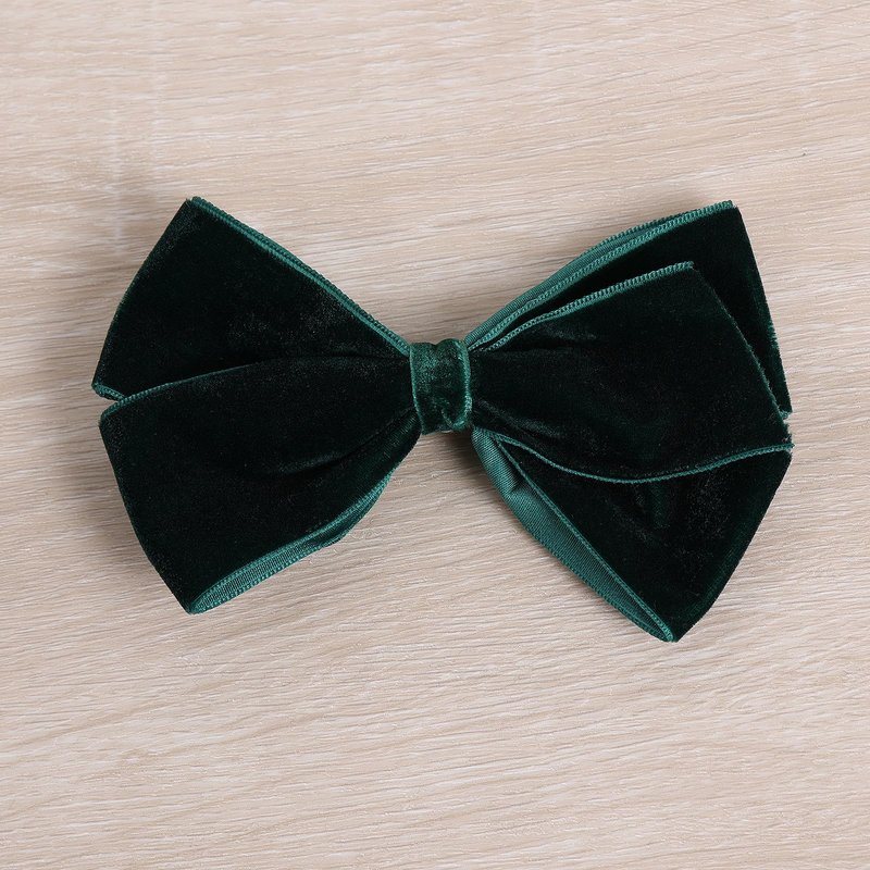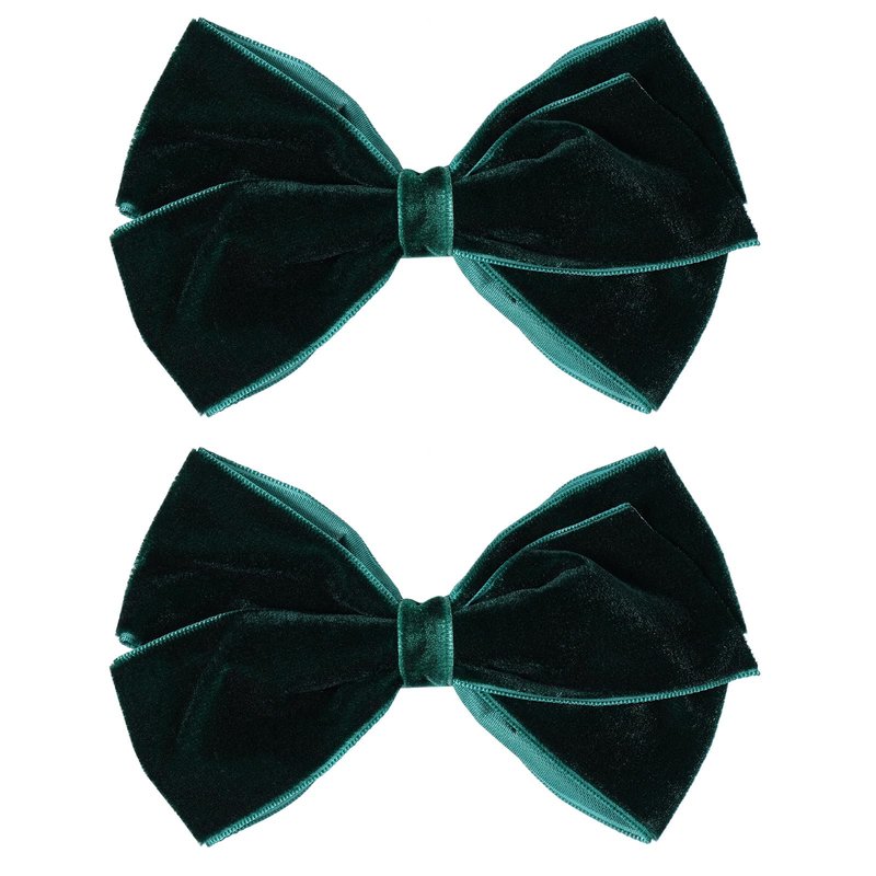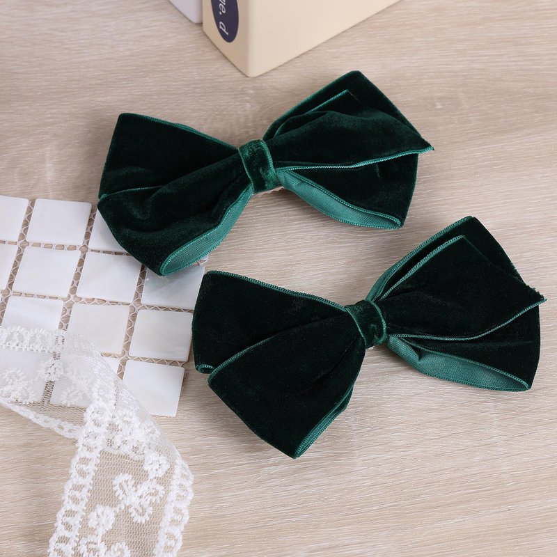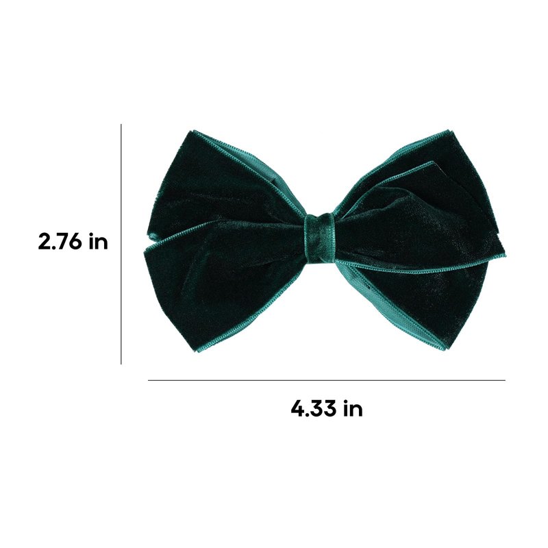 - Just the Right Size- Super kawaii and elegant dark green velvet ribbon bow hair clips come in pairs for more hair options like braids,pig tails. Not too big or tiny,just perfect for kids, baby, toddlers, teens, little girls,young ladies,women; Big velvet bow-knot size: 4.5 inch; alligator hair clips size: 2 inch; one bow weight: 0.4 ounce;