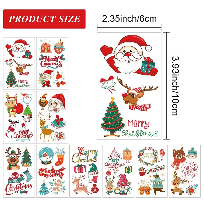 - 【Christmas Tattoos for Kids】You will receive 10 sheets Christmas temporary tattoo stickers, each size is 10*6cm/3.93*2.36 inches.