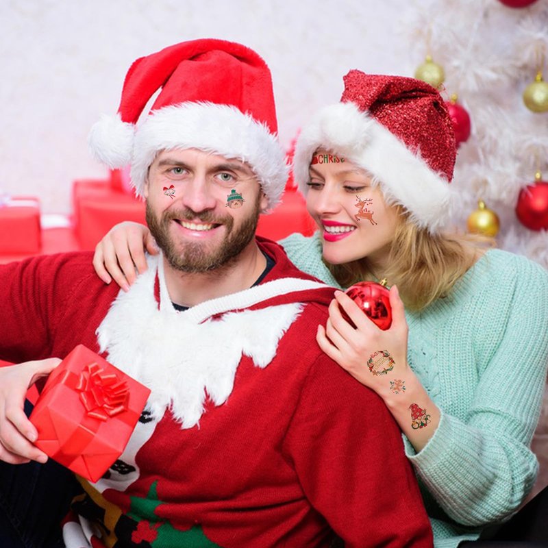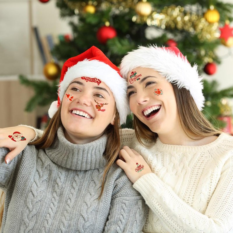 - 【Easy to Use and Remove】Choose a pattern you like, and then face down on skin, wet the temp tattoo with water and wait for 10 seconds. Then gently tear off the white surface. You will get a cute Christmas tattoo!