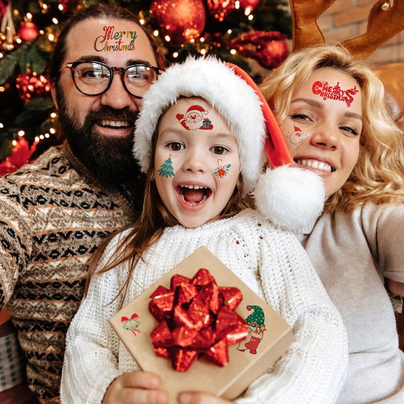 Christmas Temporary Tattoo Stickers for Kids Holiday Party Waterproof Fake Face Stickers