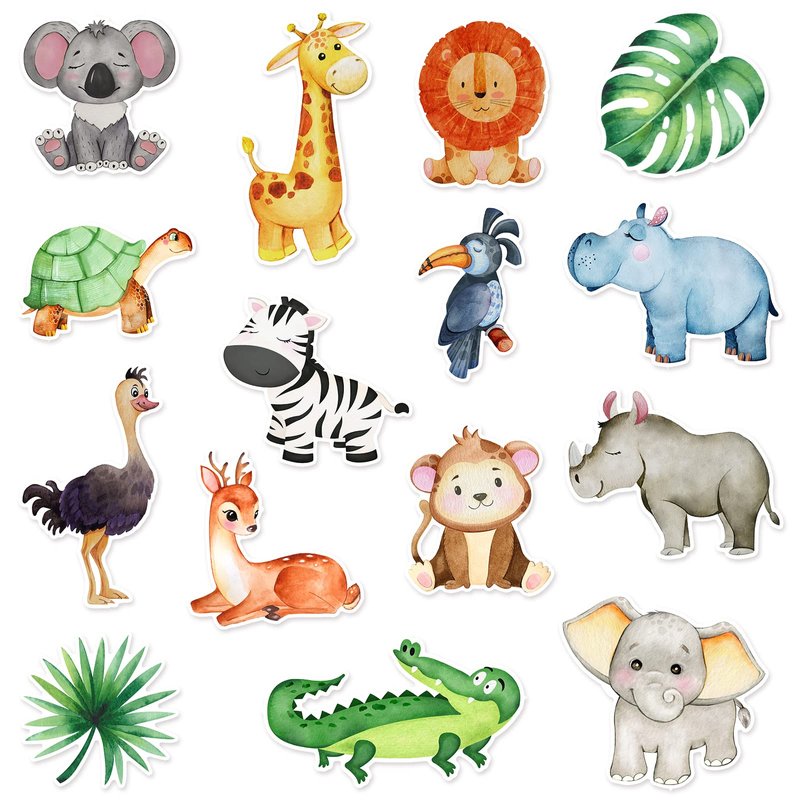- Abundant Sets: you will get 45 pieces safari animal cutouts, contains 15 styles cute animals cutouts with 100 pieces glue point dots, 3 pieces per style; With rich quantity and styles, kids can freely decorate rooms or parties