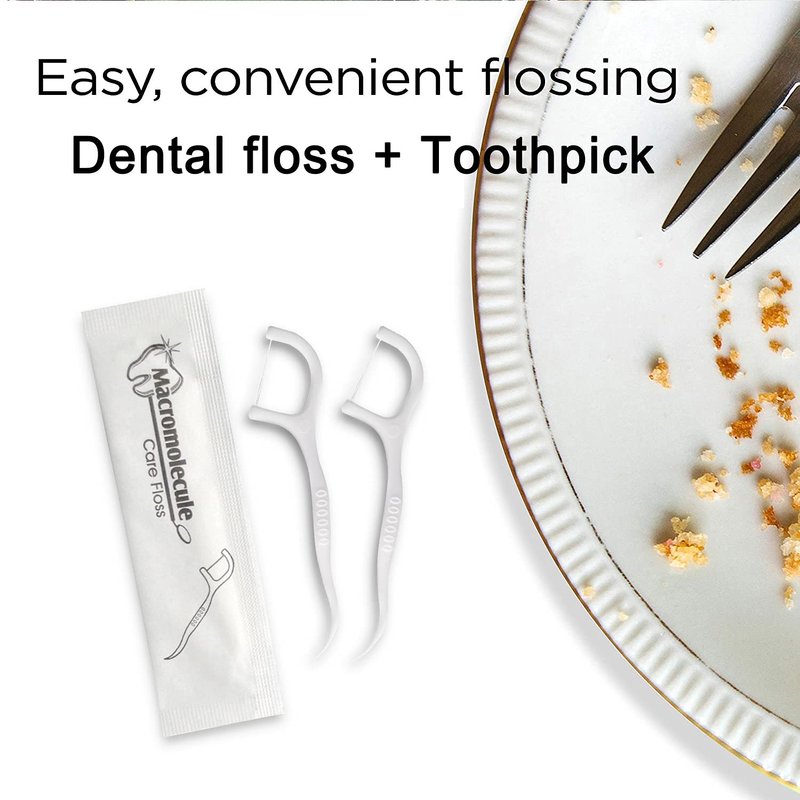 - đ ăSTRONG DENTAL FLOSS PICKSăSOFT FLOSS - Easily slides between teeth to remove unwanted and unsightly food debris. TOOTHPICK END - Removes additional plaque and food debris in tough to reach areas with protected tartar pick in handle. Let your mouth and gums feeling clean and refreshed.