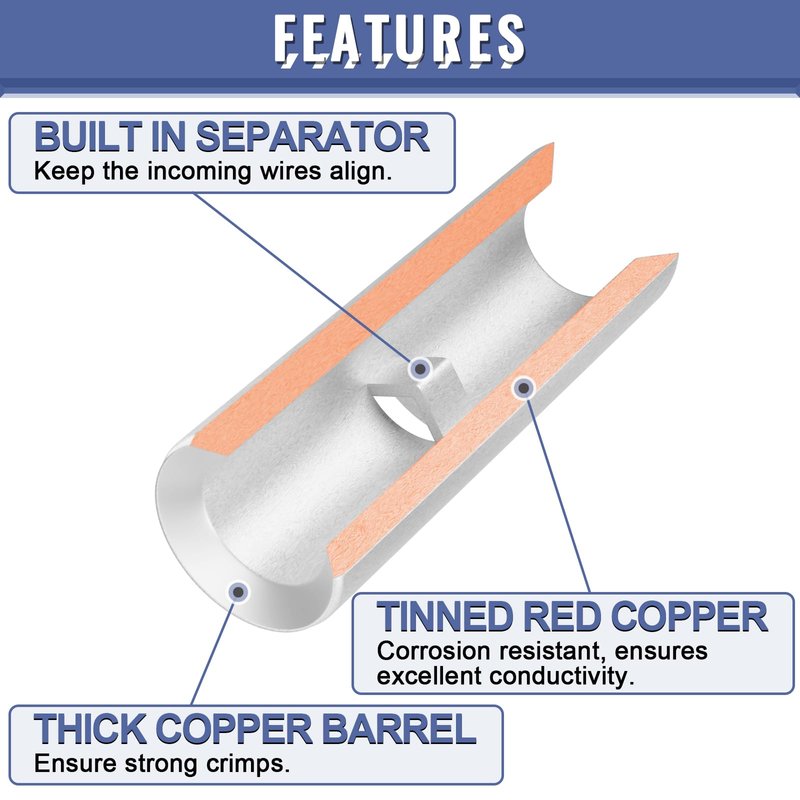 - ♥ EXCELLENT CONDUCTIVITY: Pure copper ensures the highest conductivity. A thin layer of tin will protect your butt splices from corrosion.