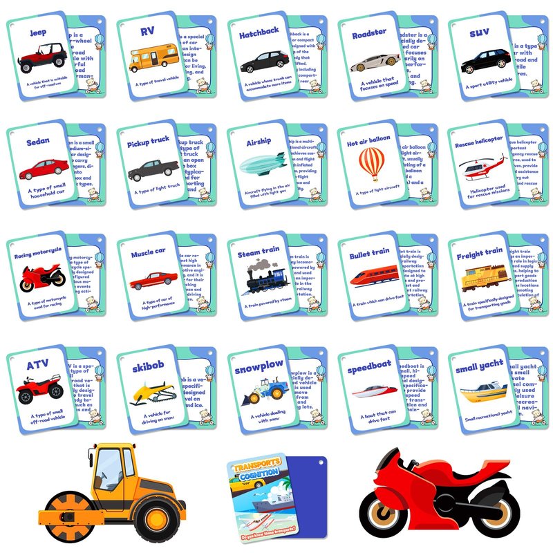 46PCS Transports Cognition Flash Cards for Kids,Cognitive Flash Cards for Cars Truck Vehicle Airplane, Waterproof Learning Flashcards for 3+ Years