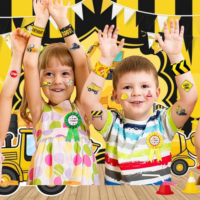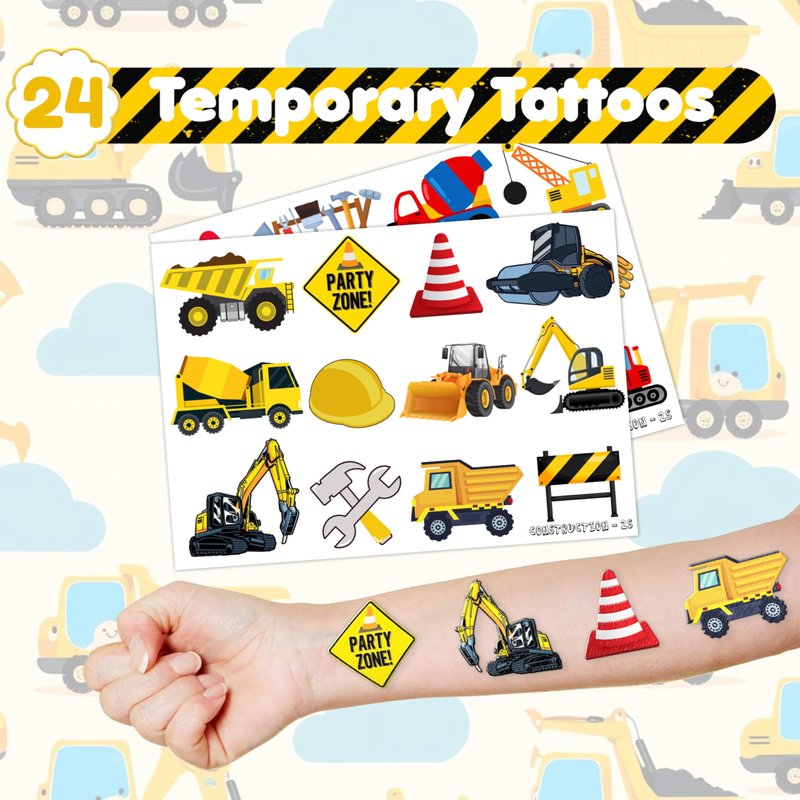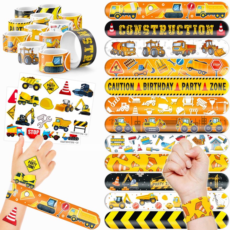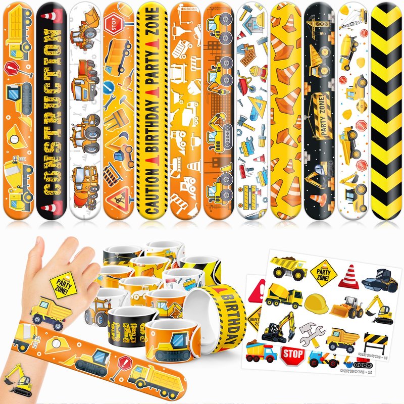 - šćPERFECT GIFT FOR CONSTRUCTION ENTHUSIASTSć: Our Construction Temporary Tattoos and Slap Bracelets are the perfect gift for people of all ages, from kids to adults. Suitable for any occasion, they offer an affordable and delightful option. Whether for school events, birthdays, or stocking stuffers, this Construction themed collection adds a fashionable and nostalgic element to anyone's accessory collection, invoking happiness and cherished memories.