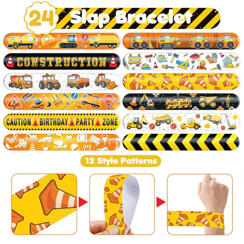 - šćEFFORTLESSLY STYLISHć: Embrace the simplicity and trendiness of wearing our slap bracelets. With just a gentle "slap," they wrap around your wrist effortlessly, creating a comfortable and stylish look. Lightweight and comfortable for extended wear, they're perfect for parties, special occasions, or everyday fashion. These accessories bring a playful charm to any gathering, capturing the joyful spirit of the Construction theme. Let the festivities begin!