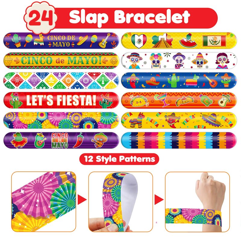 - šćEFFORTLESSLY STYLISHć: Embrace the simplicity and trendiness of wearing our slap bracelets. With just a gentle "slap," they wrap around your wrist effortlessly, creating a comfortable and stylish look. Lightweight and comfortable for extended wear, they're perfect for parties, special occasions, or everyday fashion. These accessories bring a playful charm to any gathering, capturing the joyful spirit of the Mexican theme. Let the festivities begin!